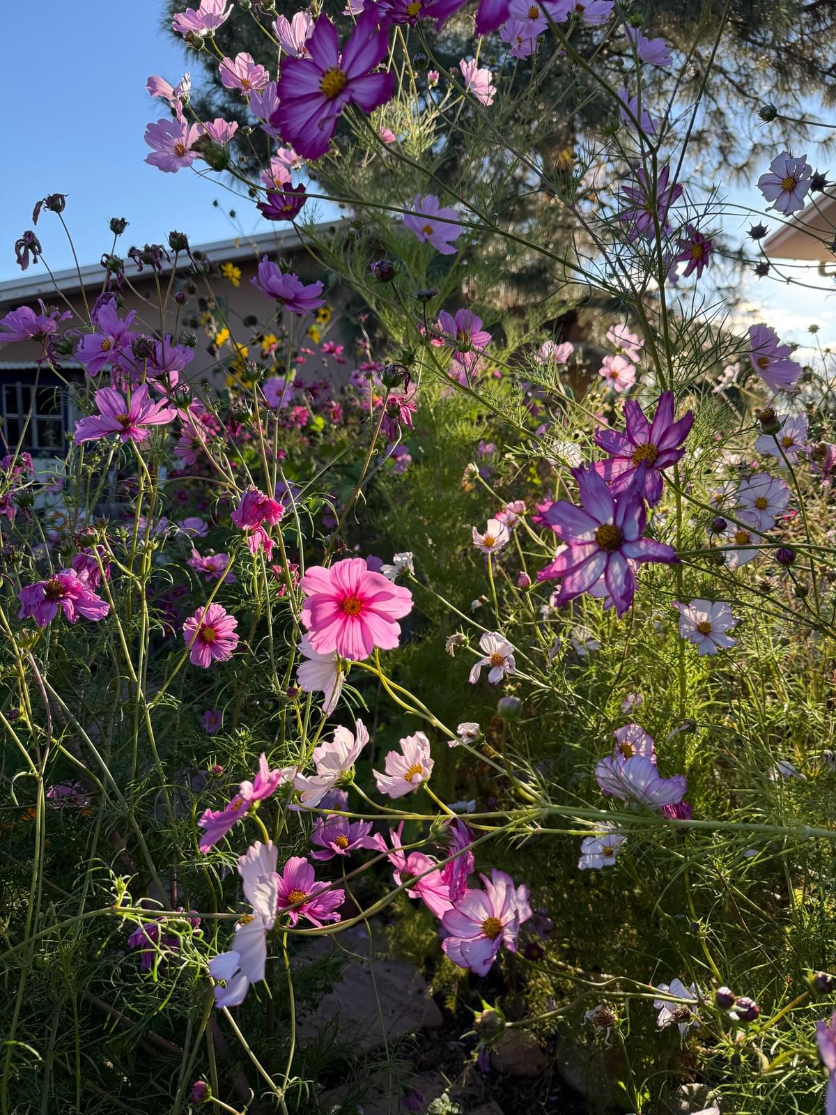 I share my life with my husband of 30 years, Chris, my three children and their partners, and my three year old granddaughter, two dogs, one cat and eight chickens.I love reading, gardening, hiking, music, meditation, dancing, painting, having fun with good people, and watching the incredible NM sunsets...